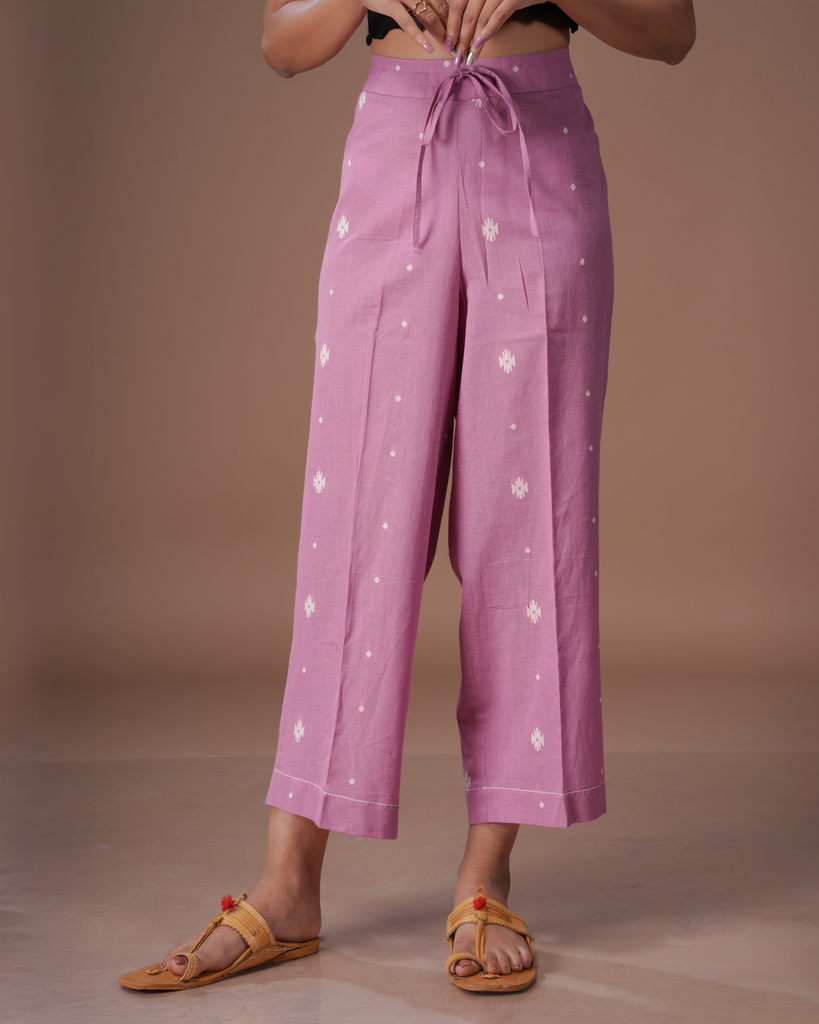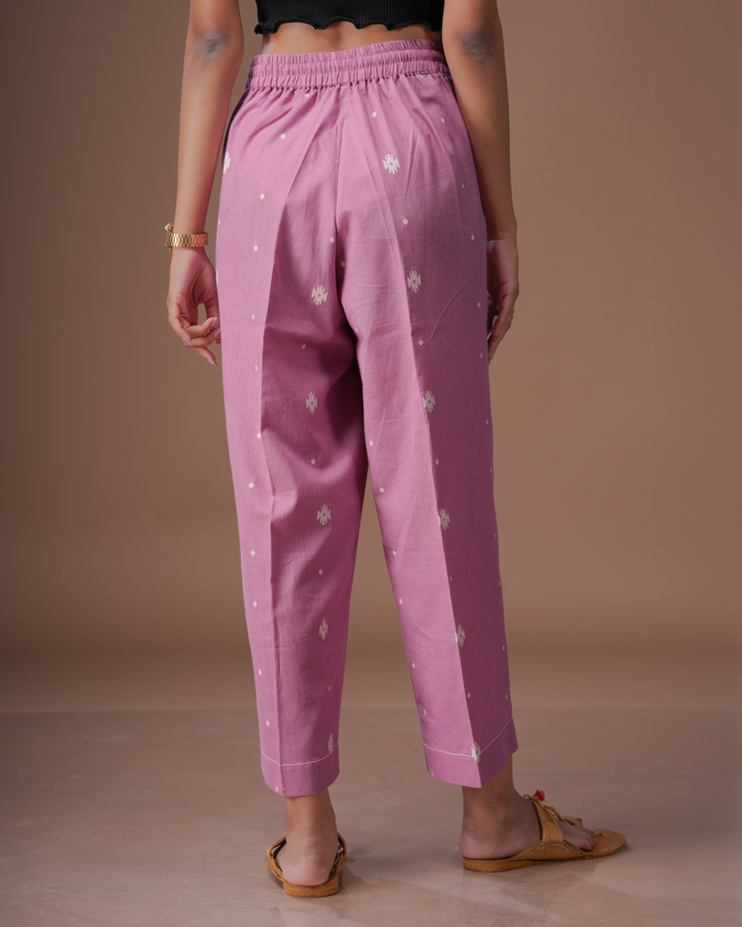 100% cotton pants in Onion pink color, drawstring waistband with stretch