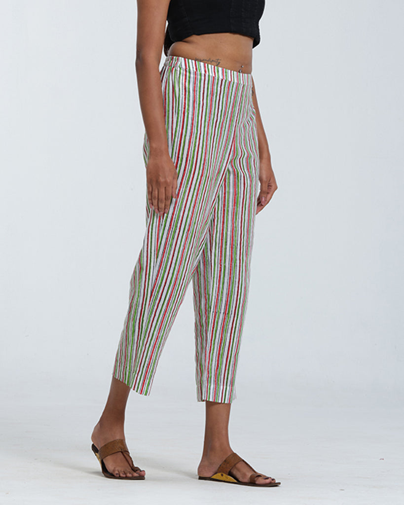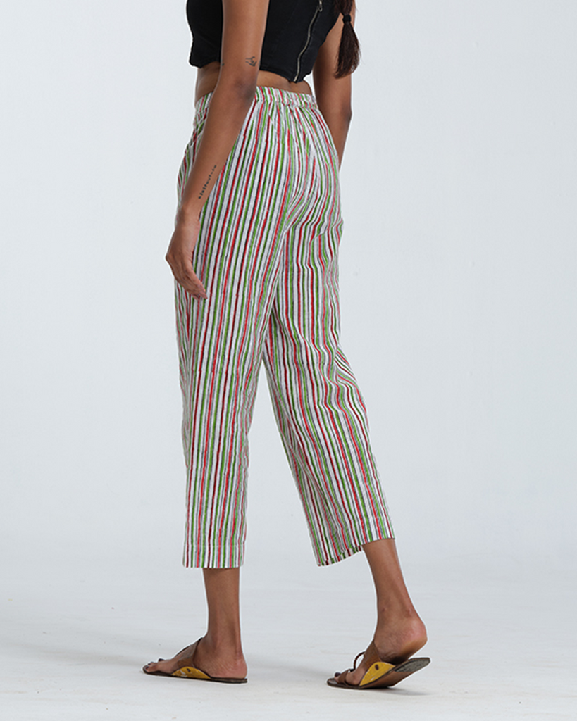 Pink and Green Stripe Bottom is designed for everyday comfort with a tailored touch. Featuring a flattering parallel cut, it comes with a structured front waistband and elasticated back for the perfect fit. The subtle Pink and green stripes add a refreshing, versatile charm.