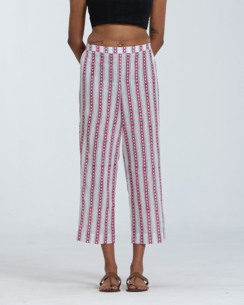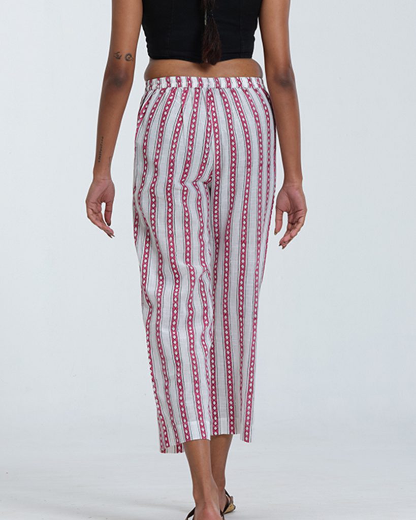 Red and White Stripe Bottom is designed for everyday comfort with a tailored touch. Featuring a flattering parallel cut, it comes with a structured front waistband and elasticated back for the perfect fit. The subtle Red and white stripes add a refreshing, versatile charm.