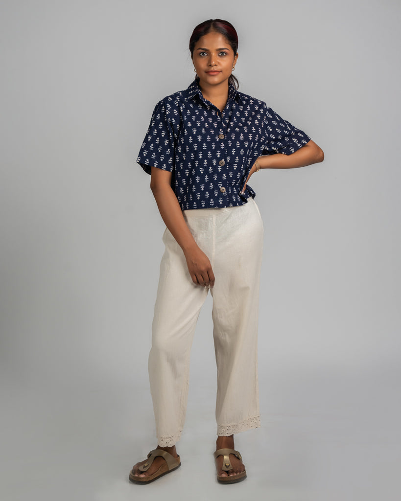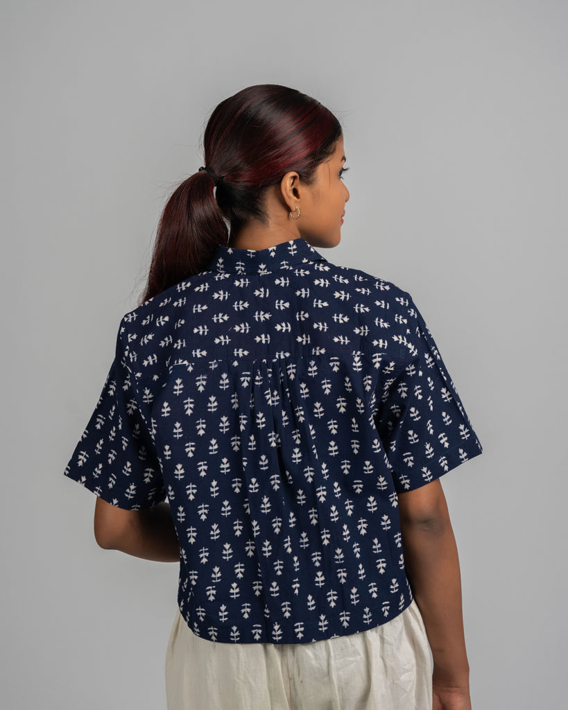 INDIGO HANDBLOCK PRINTED CROP SHIRT