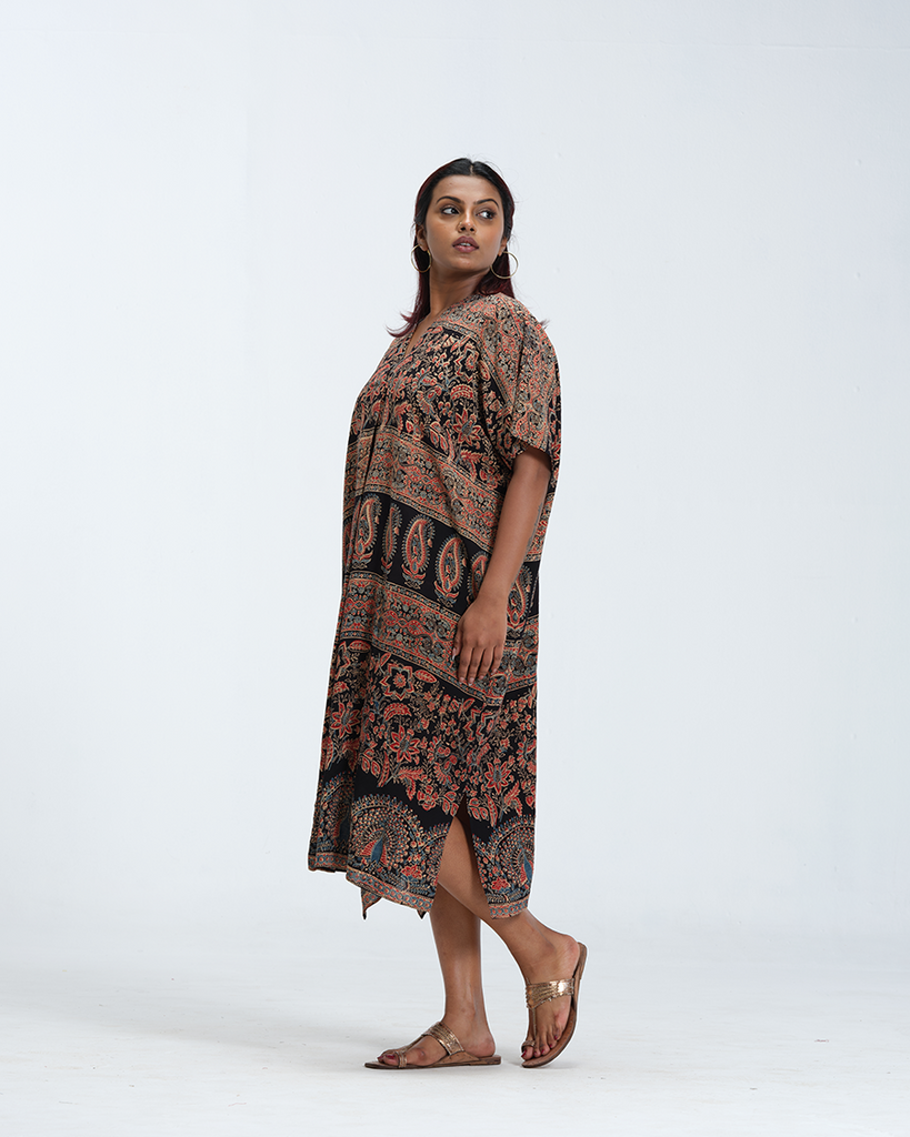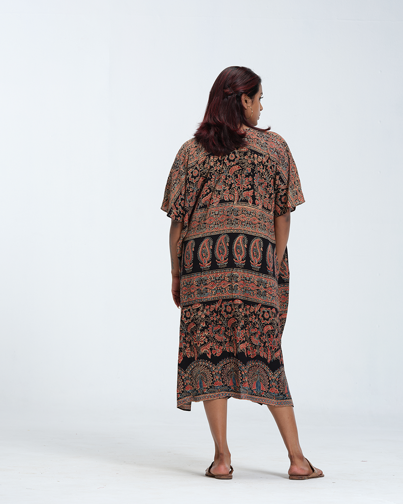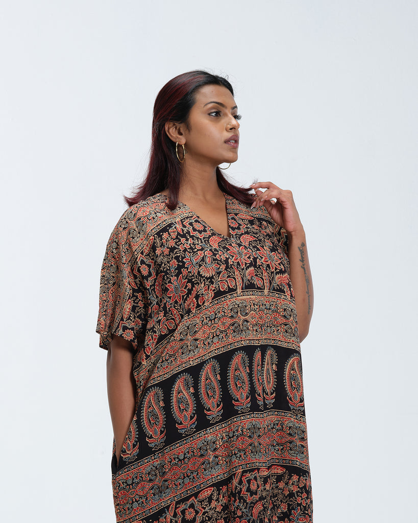 Elevate your everyday style with our Black Border Cotton Modal Kaftan. Made from smooth, breathable cotton modal, this kaftan features a refined black border print that adds definition to its flowy silhouette. Comfortable, lightweight, and effortlessly chic—perfect for relaxed days or polished casual outings.