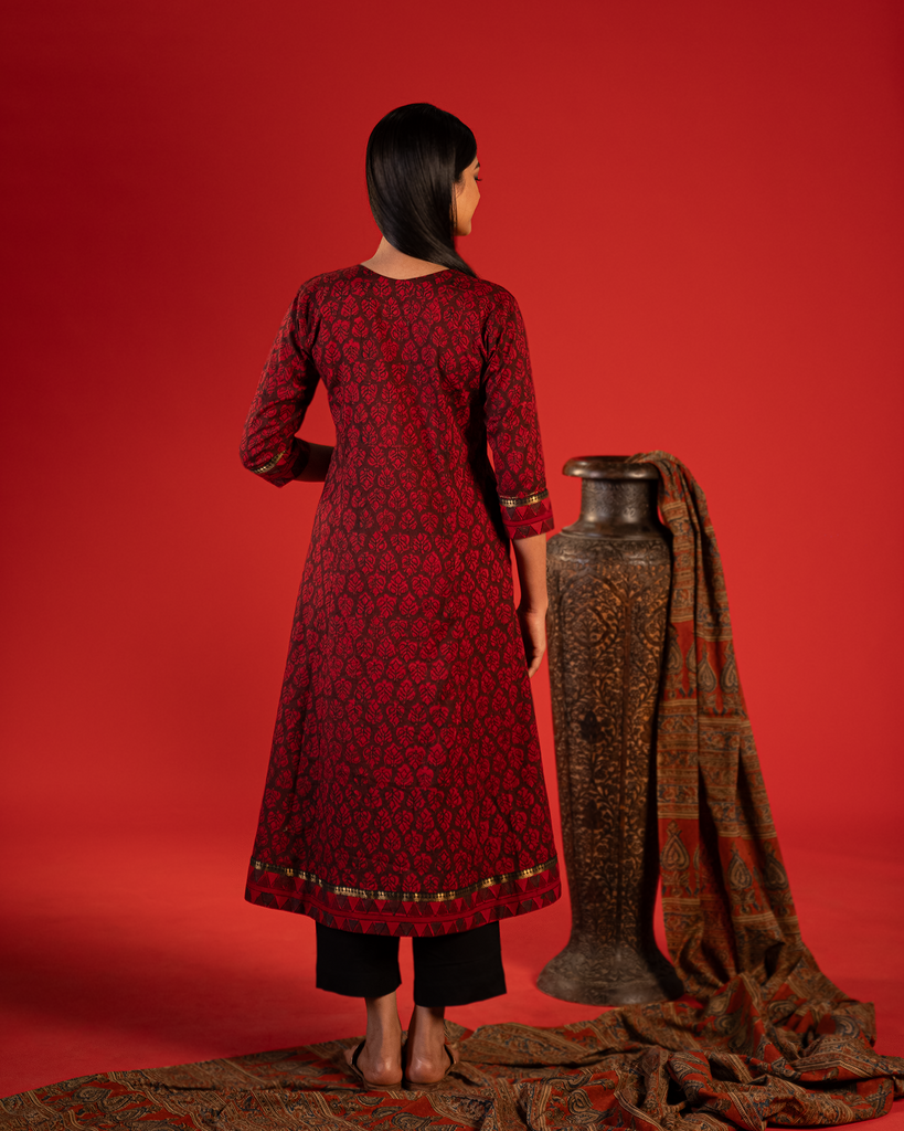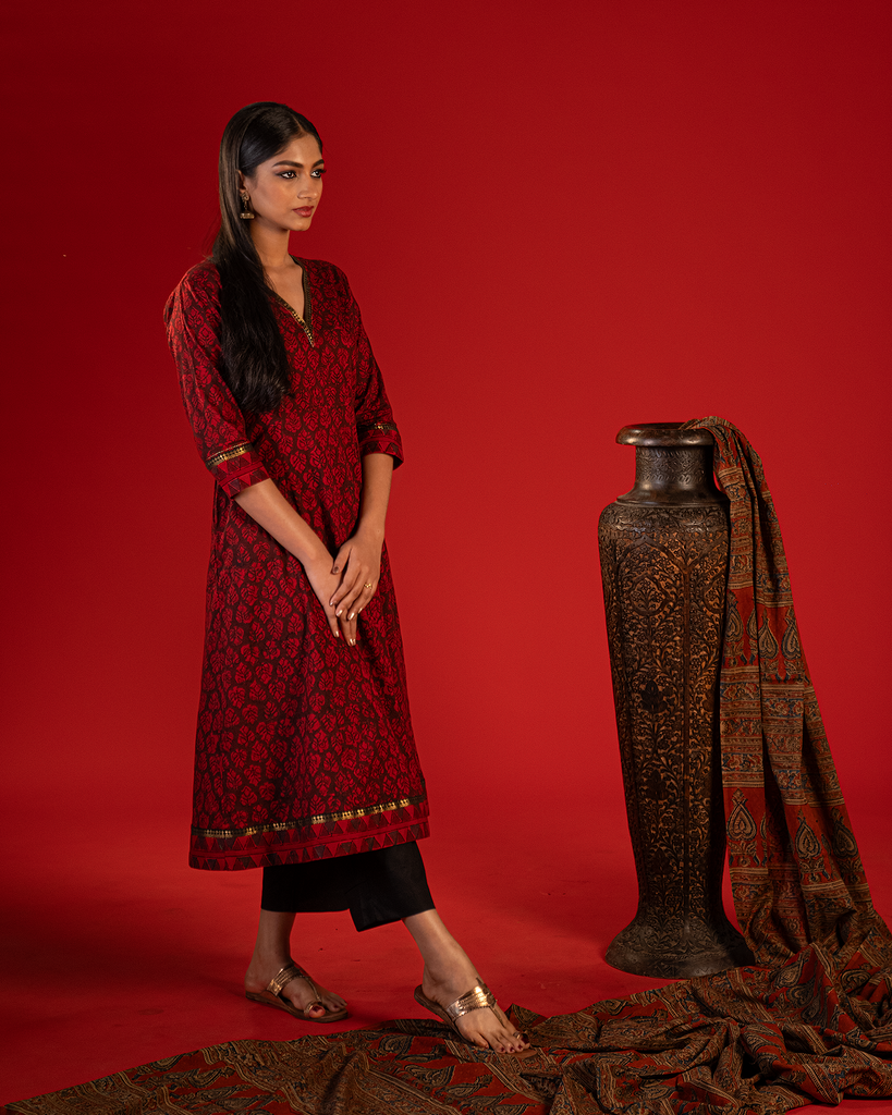 Red Kalamkari Small Butti Print Kurta