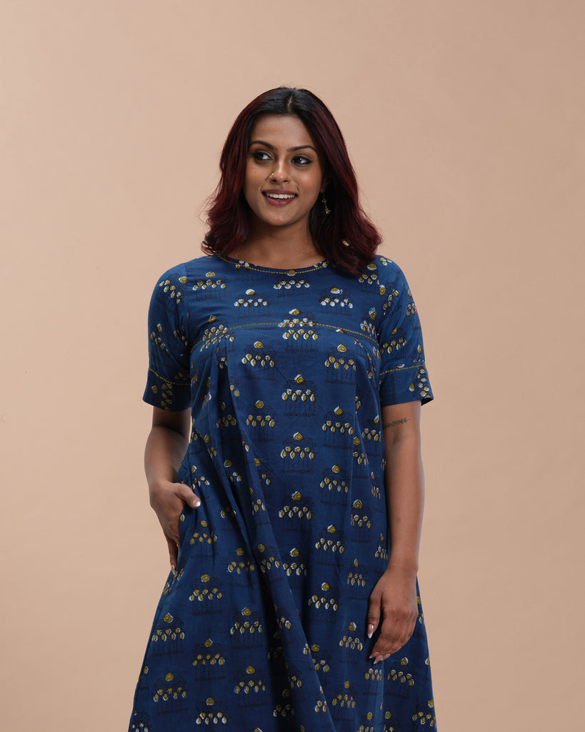 Navy Blue Polka Cotton Woven Co-Ord Set