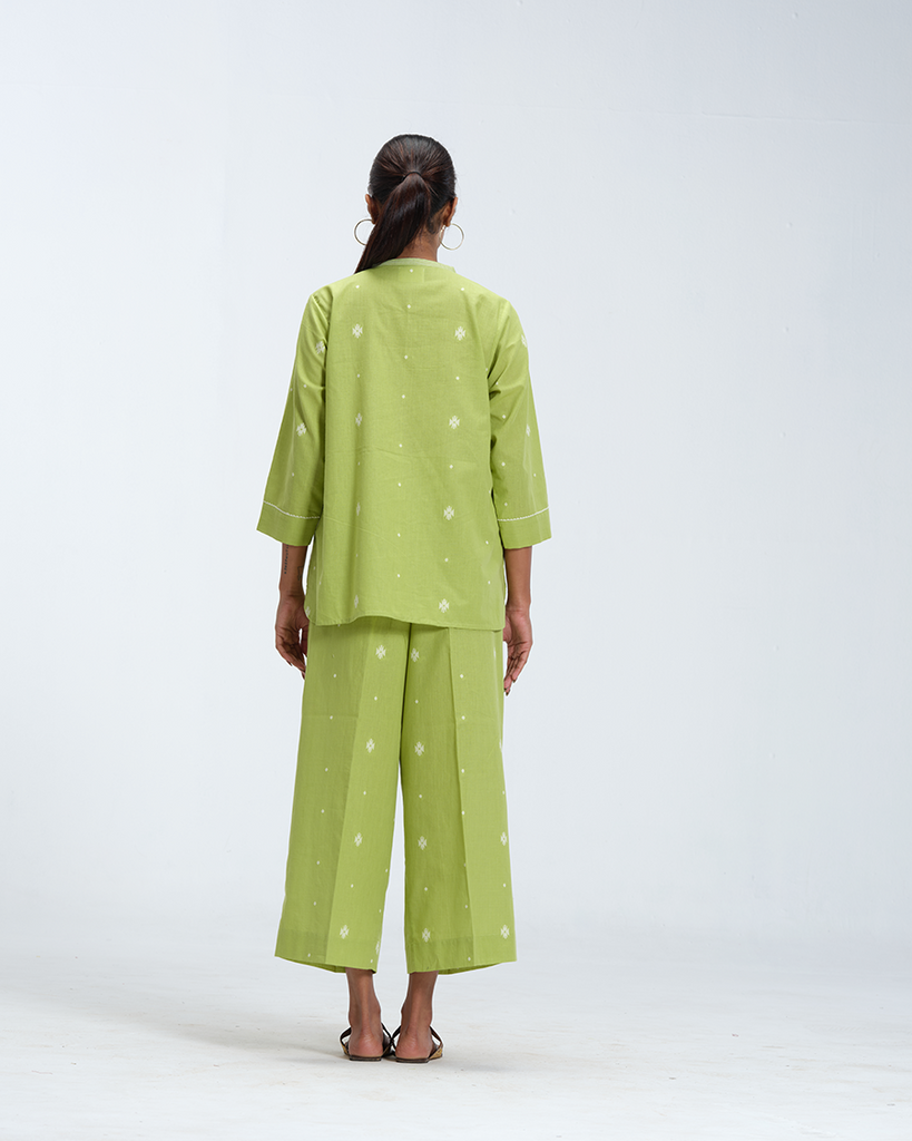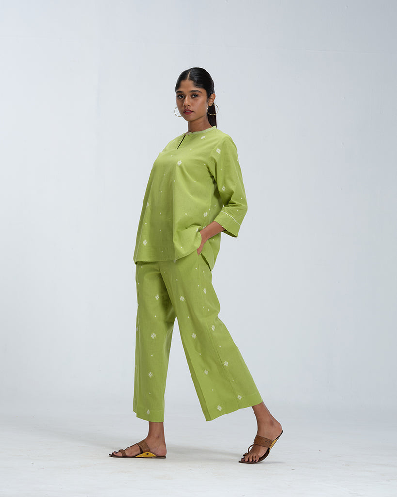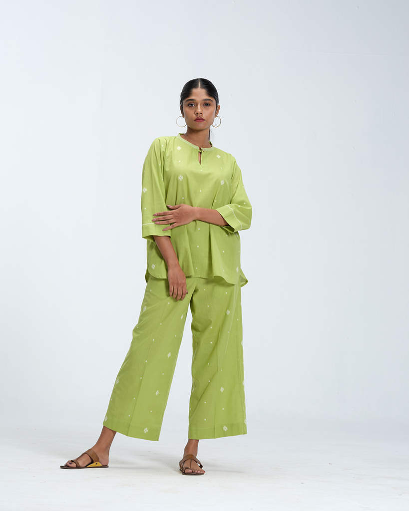 Make a playful yet chic statement with this Lime green polka woven co-ord set crafted from soft, breathable south cotton.