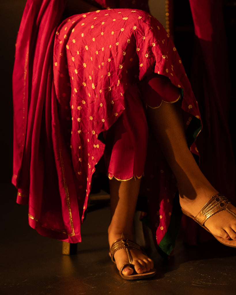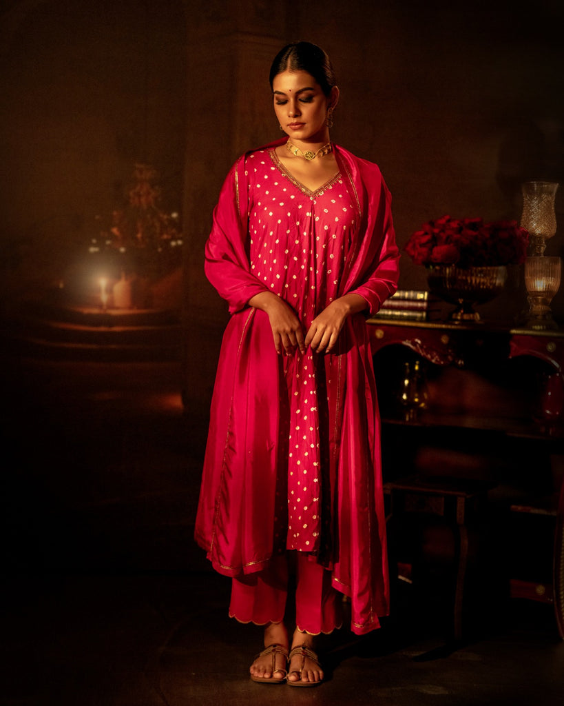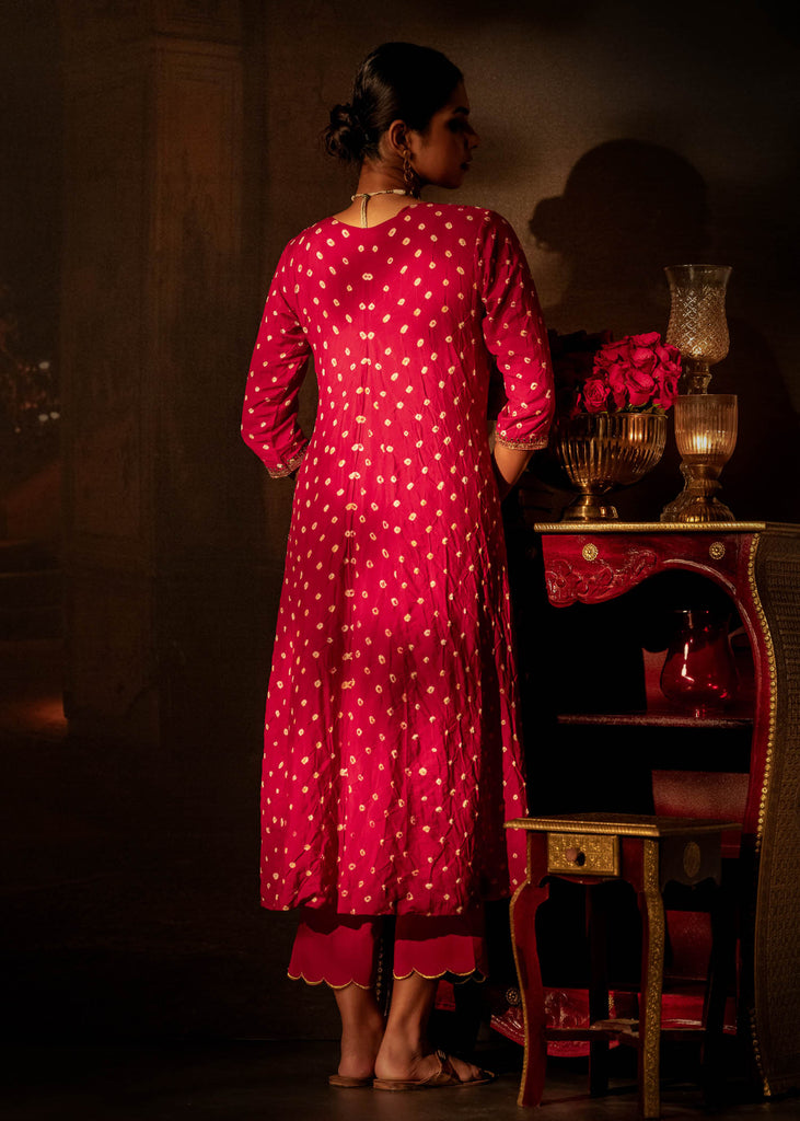 Pink Bandhni Flare Kurta